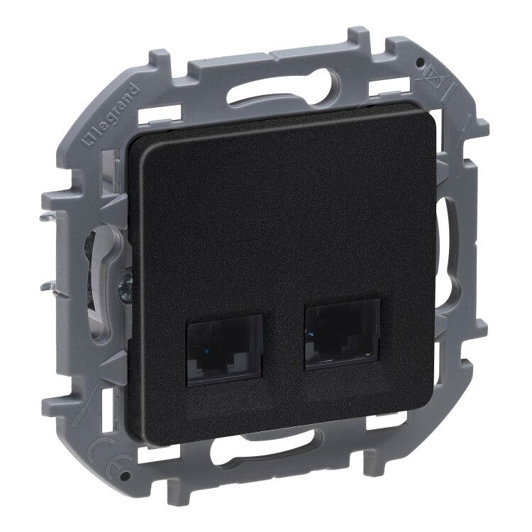 Розетка компьютерная двойная RJ45 категория 6 UTP антрацит от Legrand (серии INSPIRIA, артикул 673843) - это скрытый коммуникационный модуль для надёжного подключения двух сетевых устройств через кабель категории 6. Подходит для установки в офисах, домашних рабочих зонах и на производстве там, где требуется высокая скорость передачи данных.