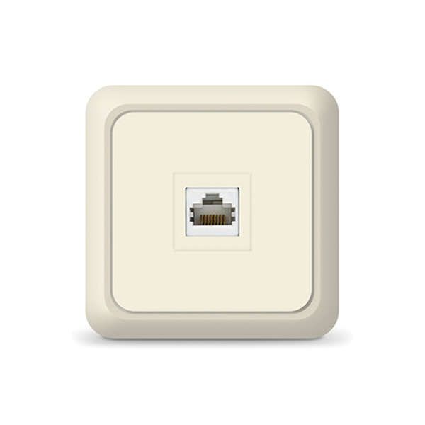 Розетка компьютерная двухместная Олимп,наружная, 1А, RJ45, бежевая (еврослот) - 1074 Союз