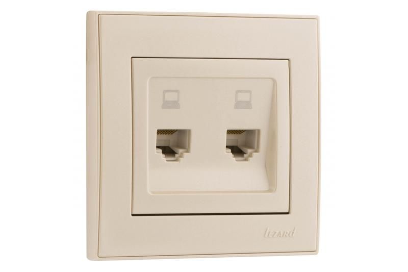 Розетка компьютерная 2-х местная RJ45 жемчужно-белый перламутр от Lezard (артикул 703-3030-141) - это компактное устройство для одновременного подключения двух сетевых кабелей Ethernet и одного бытового устройства через встроенную розетку. Подходит для установки в офисах, серверных и рабочих зонах, где требуется организованное расположение проводов.