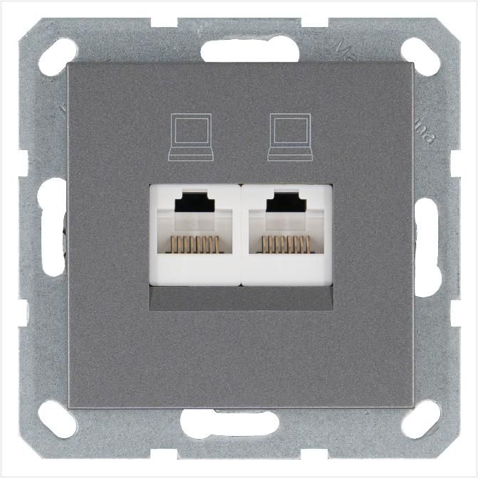 Розетка компьютерная 2-м RJ45 IP20 кат. 5E механизм алюм. Jasmart G6106S