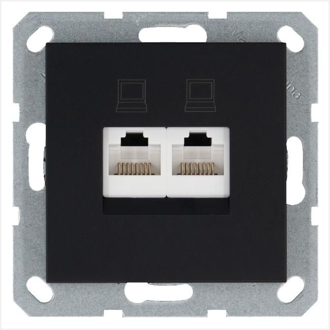 Розетка компьютерная 2-м RJ45 IP20 кат. 5E механизм черн. матов. soft touch Jasmart G6106PB