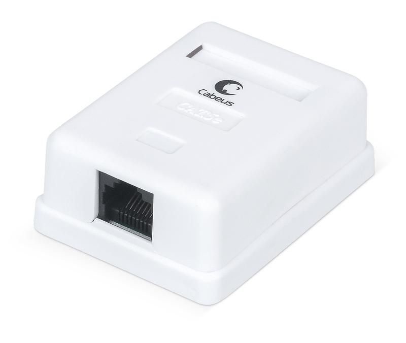 Розетка компьютерная одинарная внешняя RJ-45 категория 5e Dual IDC от бренда Cabeus (артикулы 7246c и ws-8p8c-cat.5e-1) предназначена для надёжного подключения сетевых устройств через Ethernet-кабель в условиях настенной установки. Подходит для офисов, домашних рабочих мест и промышленных объектов с невысокими требованиями к экранированию.