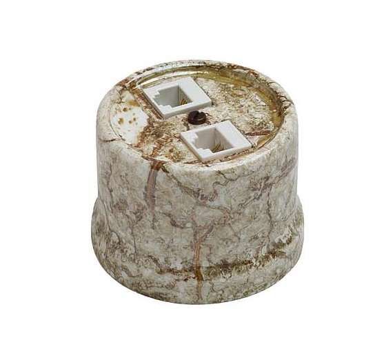 Розетка компьютерная 2-м ОП Лизетта RJ45 10А IP20 ретро кат.5E керамика мрамор Bironi B1-302-09