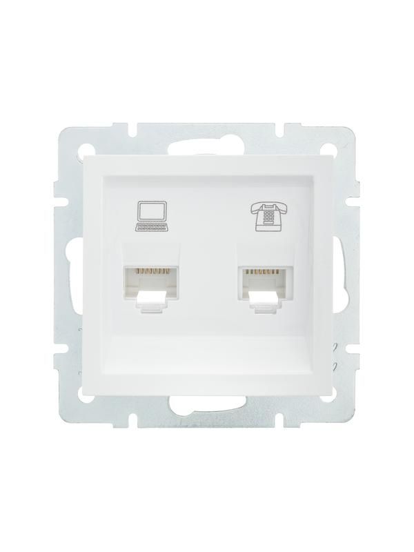 Розетка компьютерная + телефонная 1-м СП Vesna механизм бел. LEZARD 742-0288-143