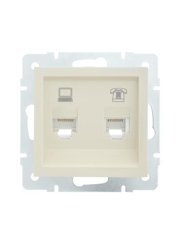 Розетка компьютерная + телефонная 1-м СП Vesna механизм крем. LEZARD 742-0388-143