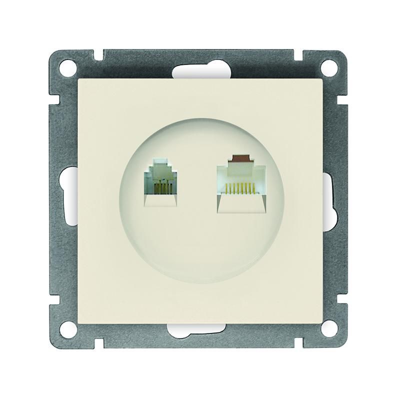 Розетка компьютерная + телефонная 2-м СП Афина механизм сл. кость (ivory) Universal A0052-I Союз