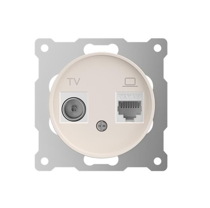 Розетка компьютерная + телевизионная 2-м СП Florence RJ45 TV кат.5E механизм беж. (1E20811301) OneKeyElectro 7700244 ССТ