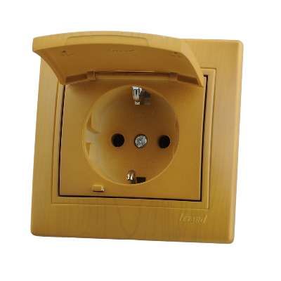 Розетка 1-м СП Mira 16А IP20 с заземл. защ. крышкой керамика ольха LEZARD 701-0701-123
