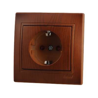 Розетка с заземлением и защитными шторками керамика сосна 16А IP20 от бренда Lezard, артикул 701-0801-124, предназначена для безопасного подключения бытовых приборов в помещениях с повышенной влажностью или где есть риск случайного контакта с контактами. Модель из серии MIRA сочетает эстетичный деревянный декор с надёжной конструкцией, соответствует ГОСТ Р 51321.1-2007.
