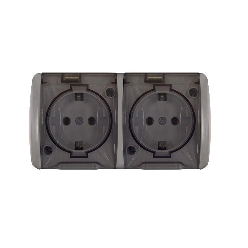 Розетка двухместная с заземлением Universal Клио, артикул к2232-gr - надёжное решение для подключения бытовой и профессиональной техники в условиях повышенной запылённости или влажности. Прозрачная крышка защищает контакты от внешних воздействий, а исполнение по стандарту SCHUKO обеспечивает совместимость с большинством европейских вилок.