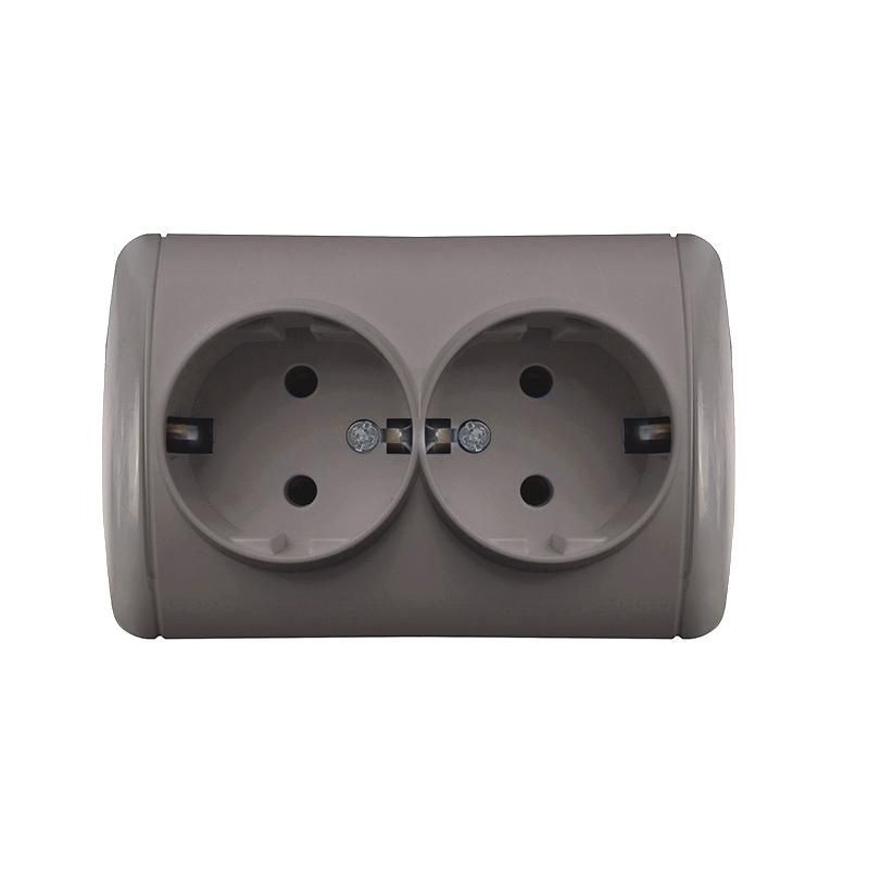Эта розетка используется там, где требуется одновременное подключение двух устройств с заземлением - например, в мастерских, гаражах, на производстве, в помещениях с высокой влажностью (бани, прачечные, кухни). Подходит для оборудования мощностью до 3,5 кВт. Благодаря защите IP44, её можно устанавливать вне помещений под навесом или в местах, где возможны брызги воды.