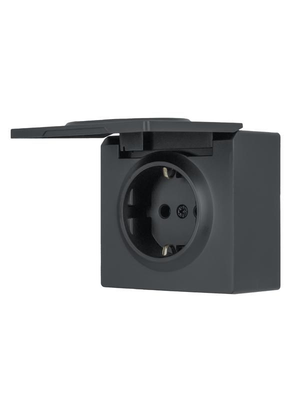 Розетка 1-м ОП LETO с заземл. крышкой ПБТ графит LEZARD 752-3400-123B