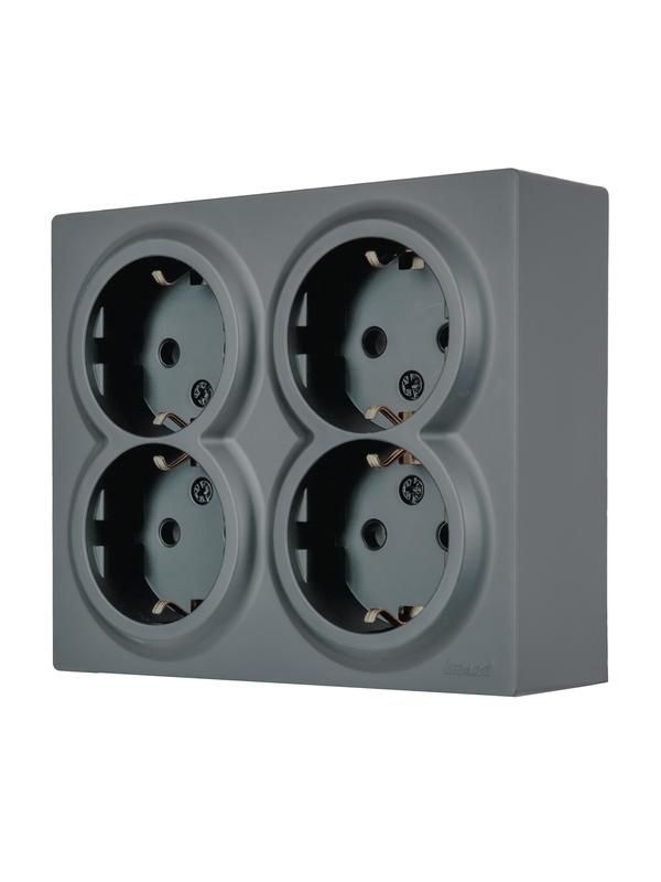 Розетка 4-м ОП LETO с заземл. закрытый корпус ПБТ графит LEZARD 752-3400-127BDP
