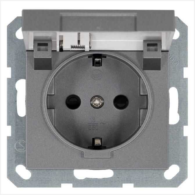 Розетка 1-м Shuko 16А IP20 с заземл. защ. шторки крышкой механизм алюм. Jasmart G5505S