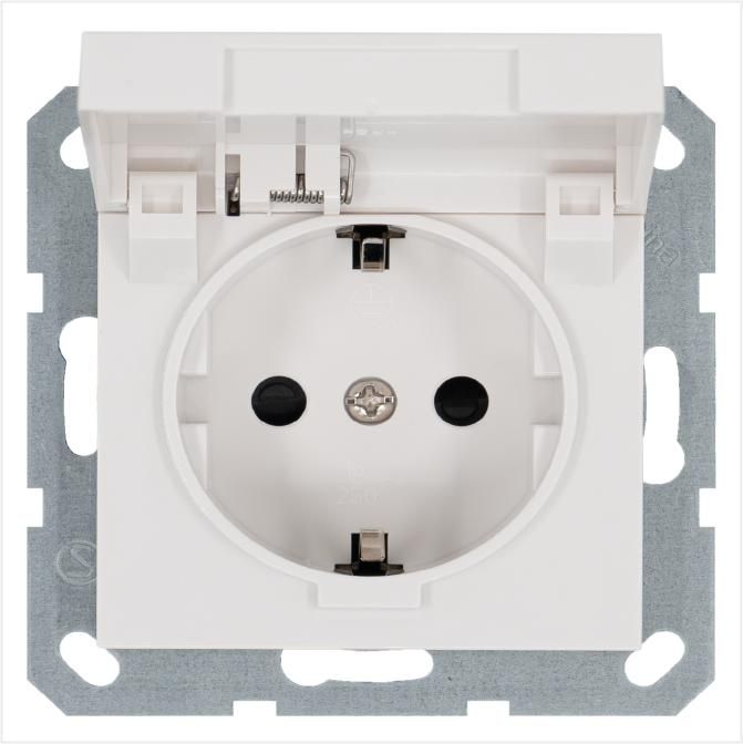 Розетка Schuko 16A 250V~ 2P+T с крышкой и защитными шторками, белый глянцевый от бренда Jasmart (артикул g5505w) предназначена для безопасного подключения бытовых и профессиональных устройств в сетях с заземлением. Конструкция сочетает надёжность, защиту от случайного доступа и долговечность материала.
