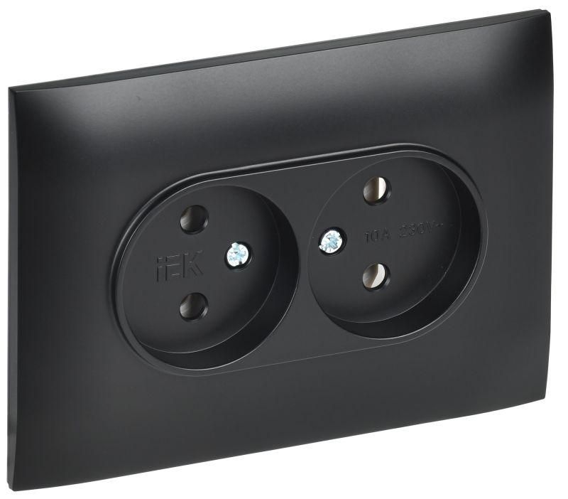 Розетка 2-м SKANDY 10А без заземл. защ. шторок в сборе SK-R10Bl черн. IEK SK-R20-10-K02-F