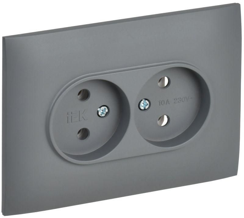 - Розетка 2-местная без заземления без защитных шторок 10А в сборе SK-R10Gr серая - часть серии SKANDY от IEK, поэтому все рамки и механизмы взаимозаменяемы внутри этой линейки