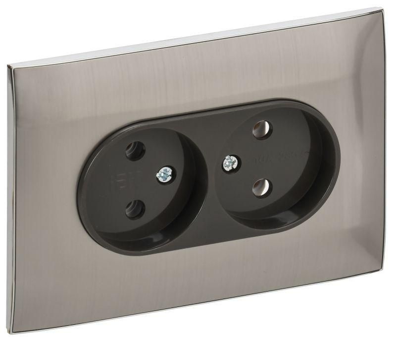 Розетка 2-модульная 10А без заземления без защитных шторок в сборе никель совместима с стандартными монтажными коробками глубиной 40–50 мм. Монтаж выполняется через винтовые зажимы - провода фазы и нуля затягиваются отверткой. Обязательно отключить питание перед работой. Комплектуется рамкой в цвет корпуса - не требуется доп. элементы декора. Диаметр отверстия под установку: соответствует ГОСТ 28971. Для подключения используйте медные одножильные провода сечением 0,75–2,5 мм2.