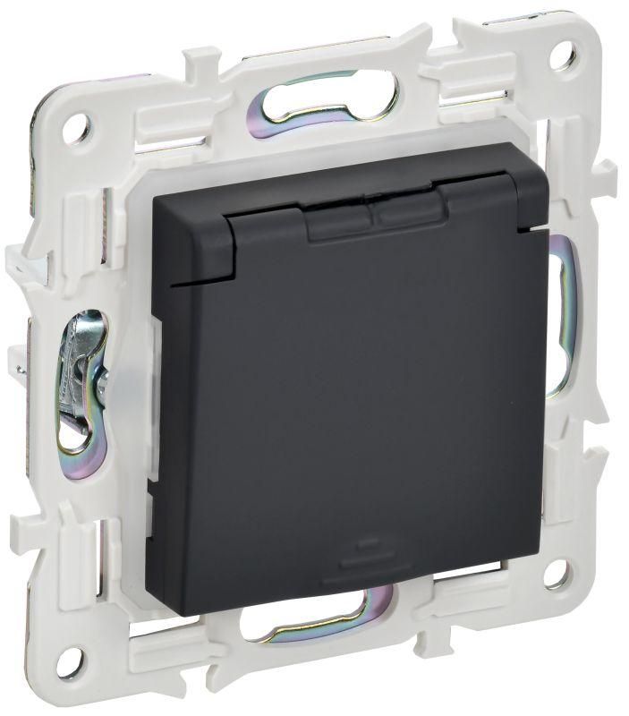 Розетка IEK (ИЭК) SK-R16-16-44-K53 - однопостовая силовая розетка с заземлением, защитными шторками и крышкой, рассчитанная на ток 16 А и степень защиты IP44. Подходит для установки в жилых, офисных и промышленных помещениях с высокой влажностью или запылённостью. Название модели указывает на её основные параметры: графитовый цвет, внутренний монтаж и наличие всех ключевых элементов безопасности.