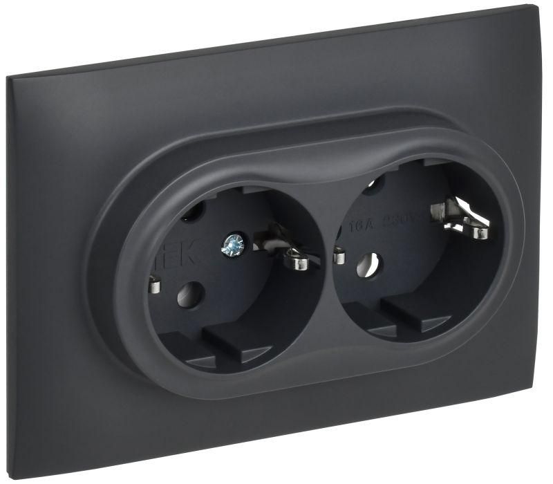- Розетка 2-местная с заземлением без защитных шторок 16А в сборе титан - идеально подходит для модульных систем, где важна скорость и точность сборки
