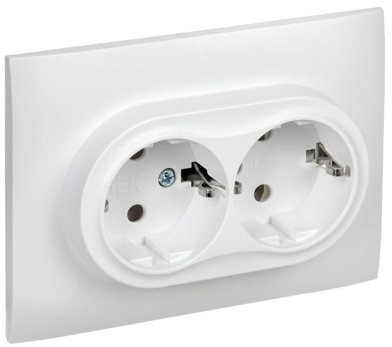 Розетка 2-м SKANDY 16А с заземл. без защ. шторок в сборе SK-R08W арктич. бел. IEK SK-R21-16-K01-F