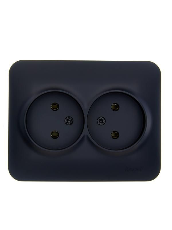 Розетка LEZARD 7081-4200-128b - двухместная модель на 16 А, выполненная из термопласта чёрного цвета, без контакта заземления. Подходит для подключения бытовых приборов в помещениях с невысокой влажностью, где не требуется защита от утечки тока через корпус.