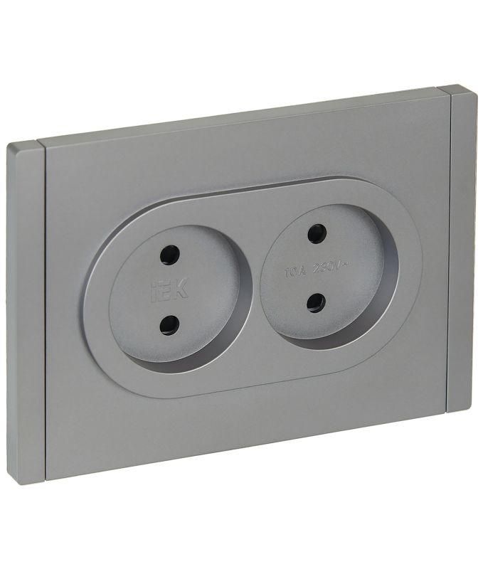 Розетка 2-м СП FORTE&PIANO FP525 10А без заземл. защ. шторки безвинт. крепл. сталь IEK FP-R23-10-1-K46