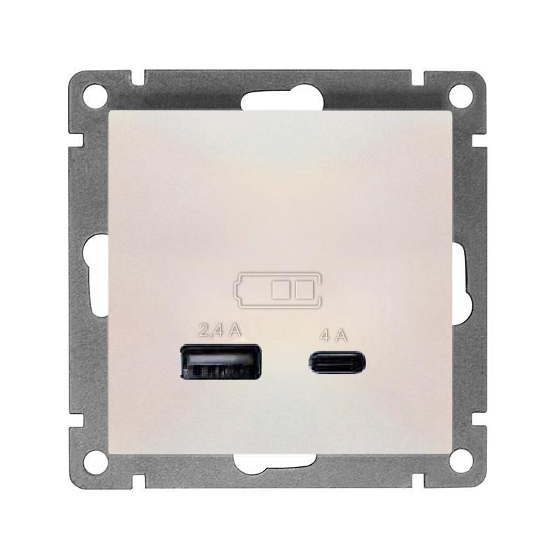Розетка 2-м USB СП Афина тип А+С 5В 1х2.4А 2х4А механизм жемчуж. Universal А0059-OBr Союз