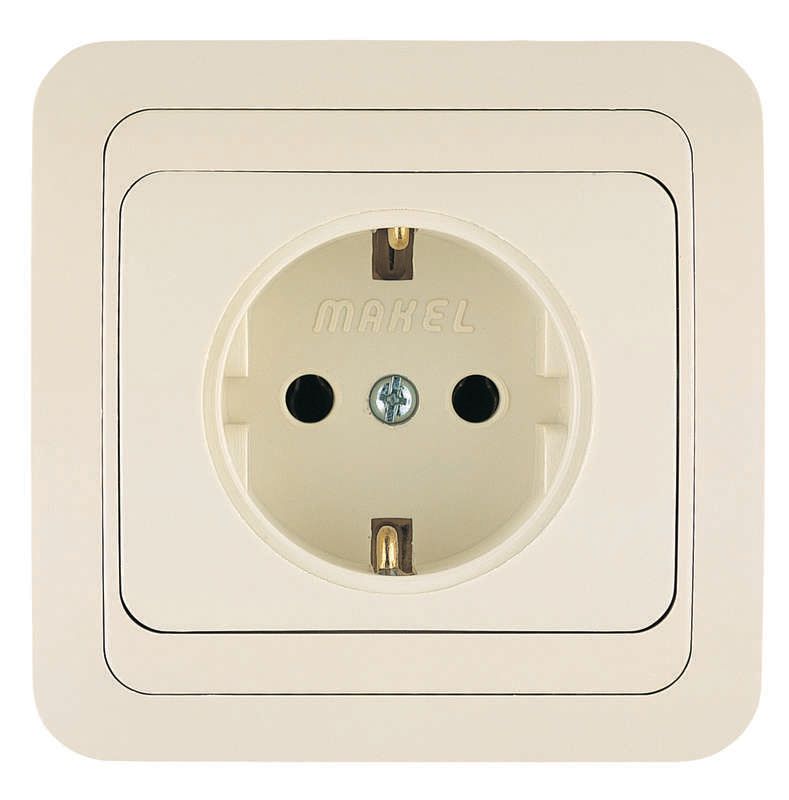 Розетка 1-м СП Mimoza 16А IP20 с заземл. керамика крем./крем. Makel 25008