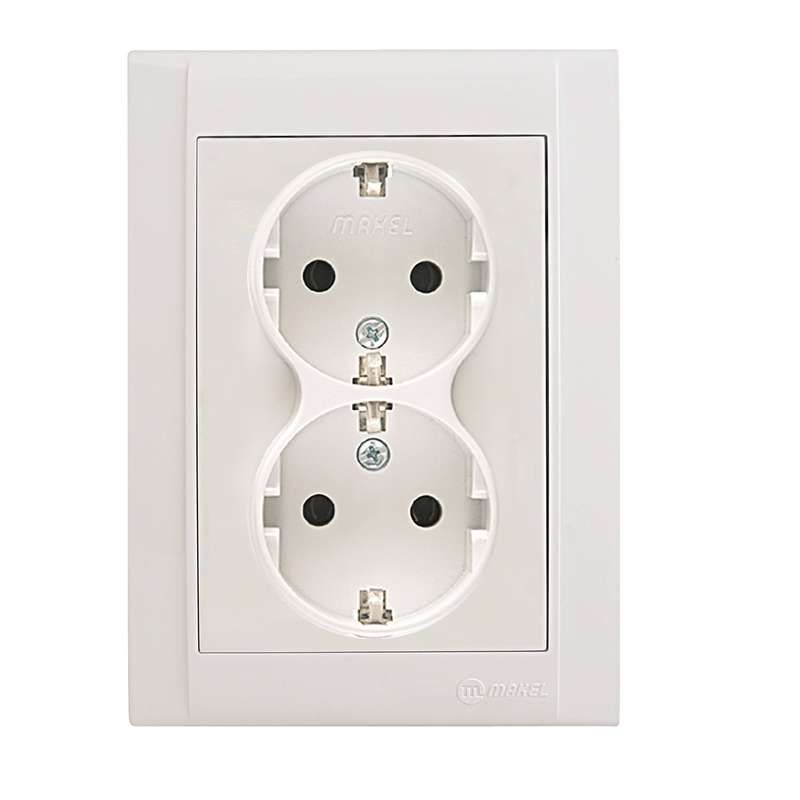 Розетка двойная с заземлением 16А IP20 белая от бренда Makel, артикул 42001057, предназначена для надёжного подключения бытовых и профессиональных устройств в помещениях с нормальной влажностью. Эта модель из серии Defne сочетает простую установку, безопасную работу и совместимость со стандартными монтажными коробками.