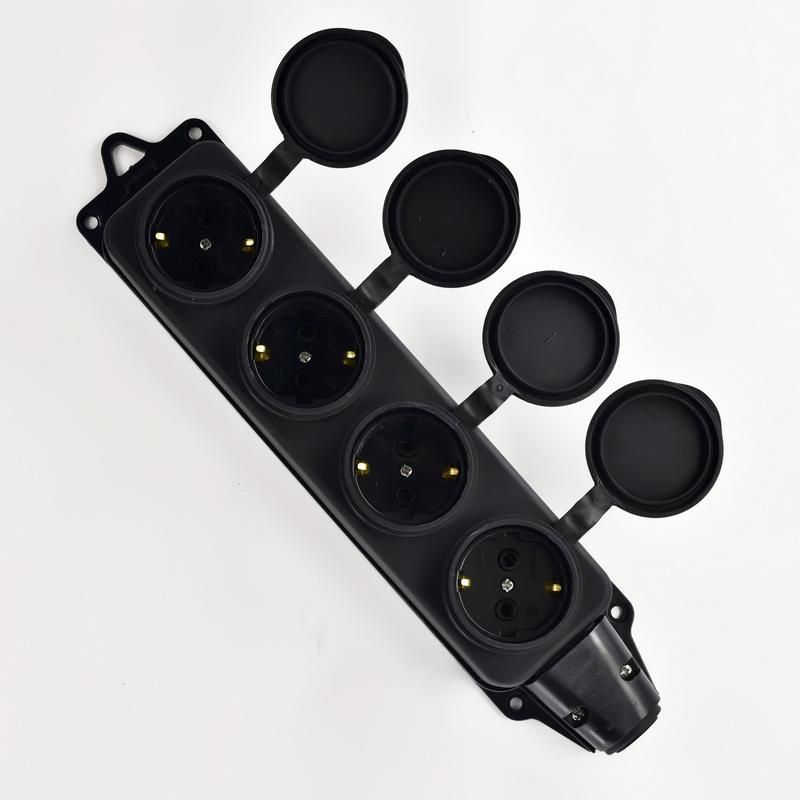 Не применяйте розетку наружного монтажа 4-местная 16А 220-240В 2P+PE с заглушками из каучука в условиях постоянного воздействия дождя, снега или прямого полива - степень защиты IP20 недостаточна. Также не рекомендуется использовать её внутри помещений с высокой влажностью (бани, прачечные), если нет дополнительной защиты. Не допускается подключение оборудования с током выше 16 А - это вызовет перегрев и выход из строя. Не устанавливайте рядом с источниками тепла (печи, нагревательные элементы).