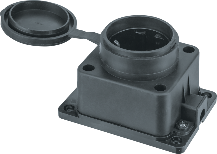 Розетка настенная с заземлением 16А IP44 черная каучук используется для подключения одиночных электроприборов к однофазной сети 250 В / 50 Гц. Подходит для установки в помещениях с высокой влажностью - мастерские, цеха, гаражи, бассейны, на открытых площадках под навесом. Также применяется при сборке переносных удлинителей и ремонтных шнуров, где важна прочность и безопасность соединений.