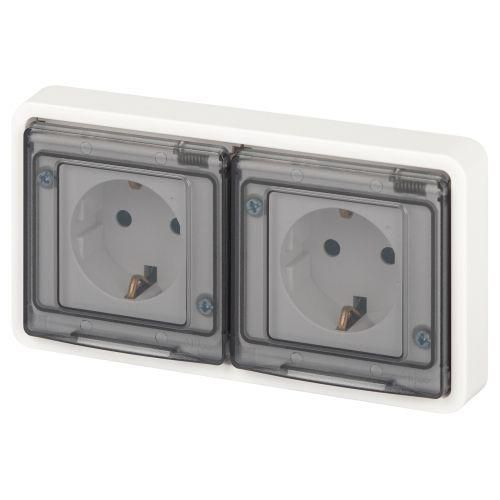 Розетка 2х2P+E предназначена для подключения электрооборудования мощностью до 3,5 кВт (при 16 А и 250 В). Подходит для установки в помещениях с высокой влажностью или запылённостью - мастерские, цеха, подвалы, кухни, санузлы, на улице под навесом. Благодаря защищённому исполнению IP55, устройство можно использовать там, где обычные розетки не подходят. Обе группы контактов работают независимо, что позволяет одновременно подключить два устройства без перегрузки.