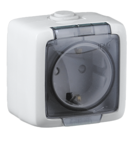 Розетка открытой установки одноместная с заземляющим контактом брызгозащищенная без защитных шторок белая 16А 250В IP44 от бренда HEGEL, артикул РА16-211 - это надёжный контактный узел для временных или постоянных внешних подключений в бытовых условиях, где важна защита от брызг и пыли.