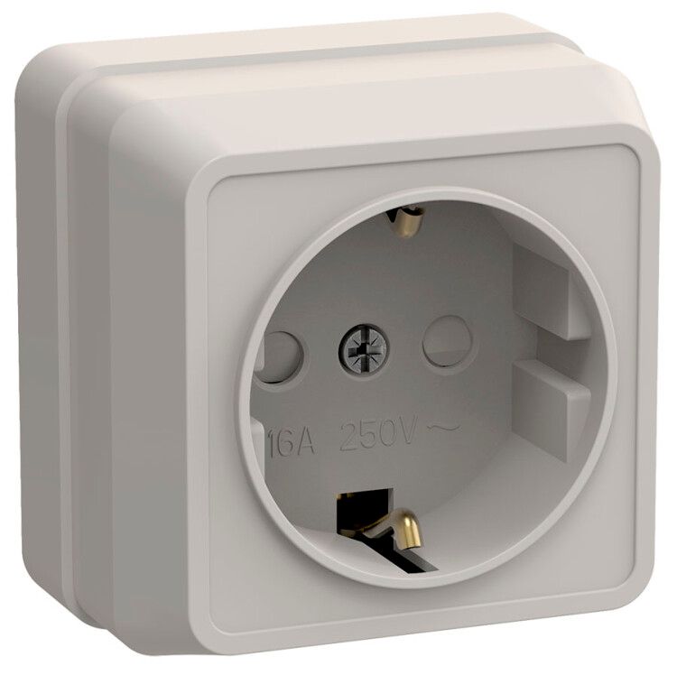 Розетка 1-местная с заземлением с защитными шторками 16А открытого монтажа кремовая предназначена для подключения одиночных однофазных потребителей переменного тока с напряжением до 250 В и частотой 50 Гц. Применяется там, где требуется надёжный контакт и защита от случайного доступа к токоведущим частям - в жилых помещениях, офисах, мастерских, на производстве. Особенно актуальна в местах с высокой проходимостью, детской средой или в условиях временного оборудования.