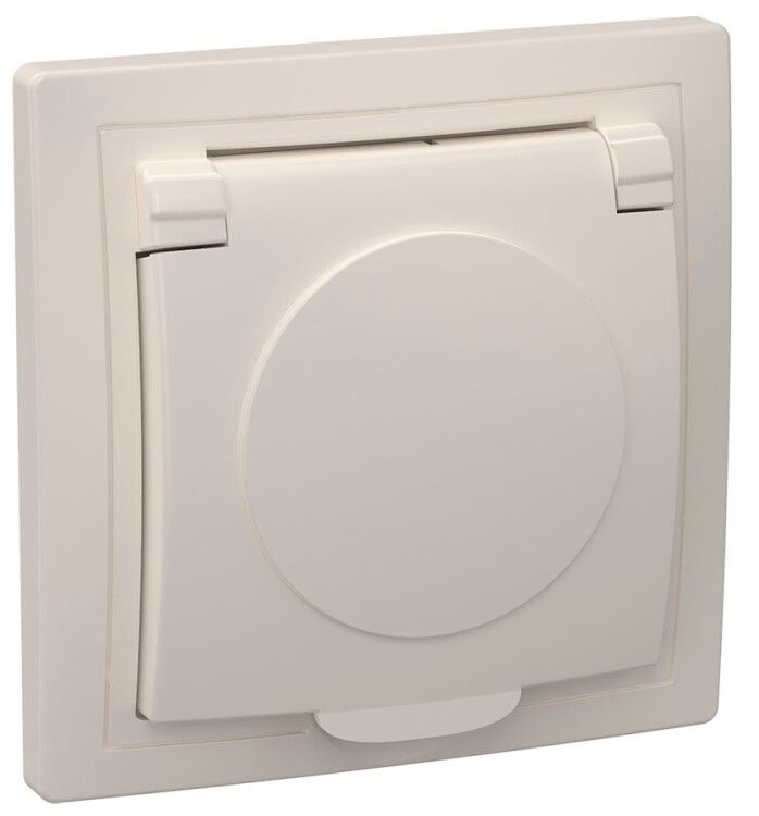 Розетка выполнена в соответствии с ГОСТ Р 51322.1 и имеет защиту контактов - крышка предотвращает доступ к токоведущим элементам при отключённом оборудовании. Материал корпуса самозатухающий, что снижает риск возгорания при перегрузках. IP20 обеспечивает базовую защиту от прикосновения, но не рассчитана на влажные среды - не применяйте в ванных комнатах, банях или на улице.