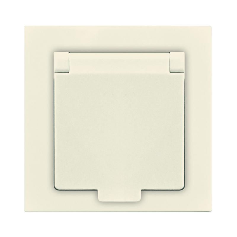Розетка одноместная с крышкой, с заземлением, 16А, 220В, слоновой кости (ivory) из серии «Афина» от бренда Universal - надёжное решение для скрытой проводки в жилых и офисных помещениях. Артикул a0029-i сочетает классический дизайн, безопасность и совместимость с европейскими вилками.