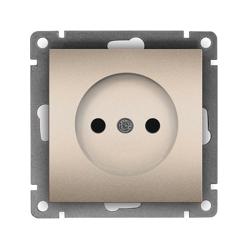 Розетка одноместная 16А 220В IP20 без заземления шампань серия Афина предназначена для постоянной установки в стену и подключения устройств с двухштыревой вилкой. Подходит для освещения, зарядных устройств, телевизоров, компьютеров и других маломощных приборов, где не требуется защитное заземление. Применяется в жилых помещениях, офисах, гостиницах - там, где важна эстетика и безопасность при нормальных условиях эксплуатации.