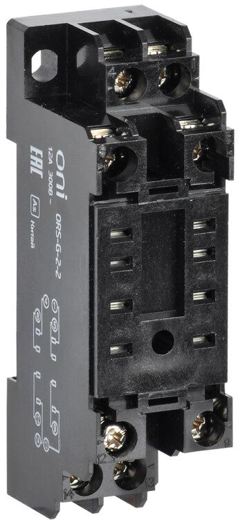 Розетка для реле OGR-2 2C от ONI (IEK) - это компактный крепёжный элемент для установки промежуточных реле на DIN-рейку. Артикул ors-g-2-2-g обеспечивает надёжное подключение восьми контактов с винтовыми зажимами, что делает её удобной для сборки автоматических систем управления.