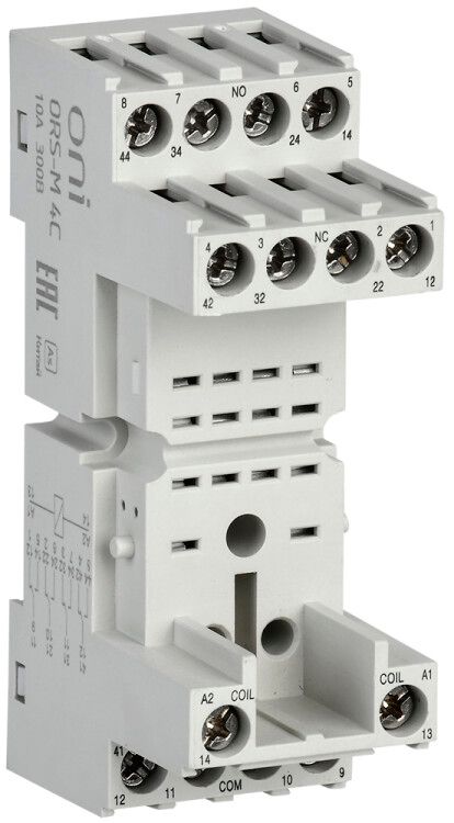 Розетка для реле ORM 4C ONI - это компактный элемент для быстрого подключения и замены реле серии ORM 4C на DIN-рейке. Артикул ors-m-1-4-g обеспечивает надёжное фиксирование и удобство обслуживания в распределительных щитах.