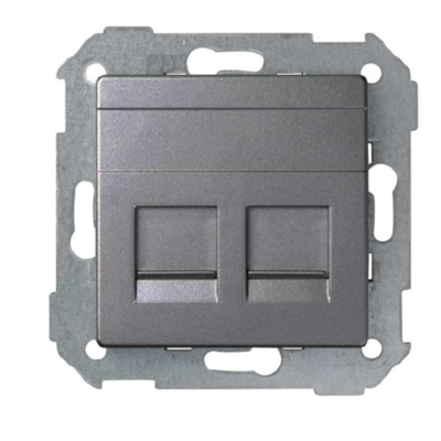 Розетка прямая для передачи данных 2 разъема RJ45, цвет матовый титан, серия S82 Concept Simon - компактный модуль для организации сетевых соединений в офисах, жилых помещениях и на производстве. Устройство обеспечивает надёжный доступ к сети через два стандарта Ethernet, совместимо с современной коммуникационной инфраструктурой.