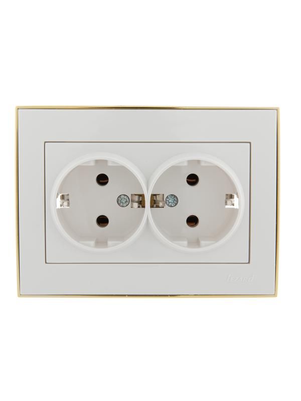 Розетка двойная с заземлением керамика белая с боковой вставкой золото применяется: