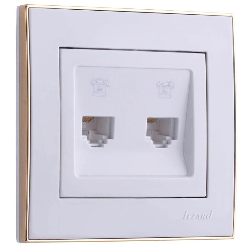 Розетка телефонная 2-м СП Rain RJ11 с зол. боковой вставкой бел. LEZARD 703-0226-138