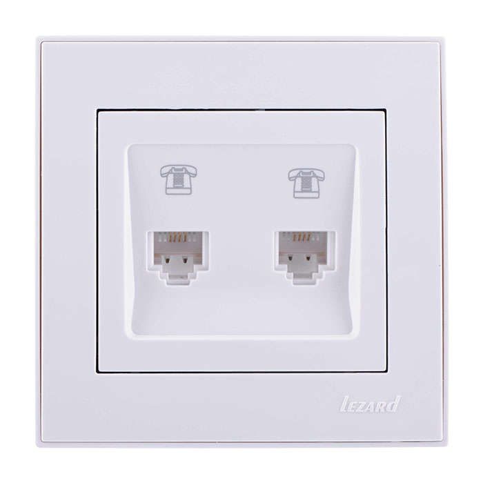Розетка телефонная двойная RJ11 16А IP20 евро стандарт белая от бренда Lezard, артикул 703-0202-138 - это комбинированное устройство для подключения телефонной линии и бытовых электроприборов в одной рамке, соответствует европейскому стандарту монтажа. Подходит для установки в жилых и офисных помещениях с внутренней проводкой.