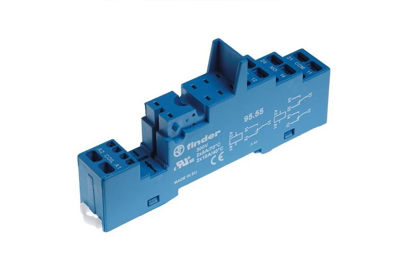 Розетка с безвинтовыми клеммами (пружинный зажим) для реле 40.51, 40.52, 40.61, 40.62, применяются модули 99.02, 86.30, в комплекте пластиковая клипса 095.91.3, версия: синий цвет - 95.55SPA FINDER 9555SPA