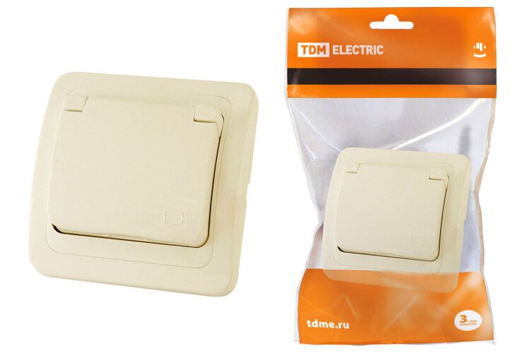 Розетка с крышкой 2П+З 16А сл. кость "Валдай" | SQ1804-0111 TDM