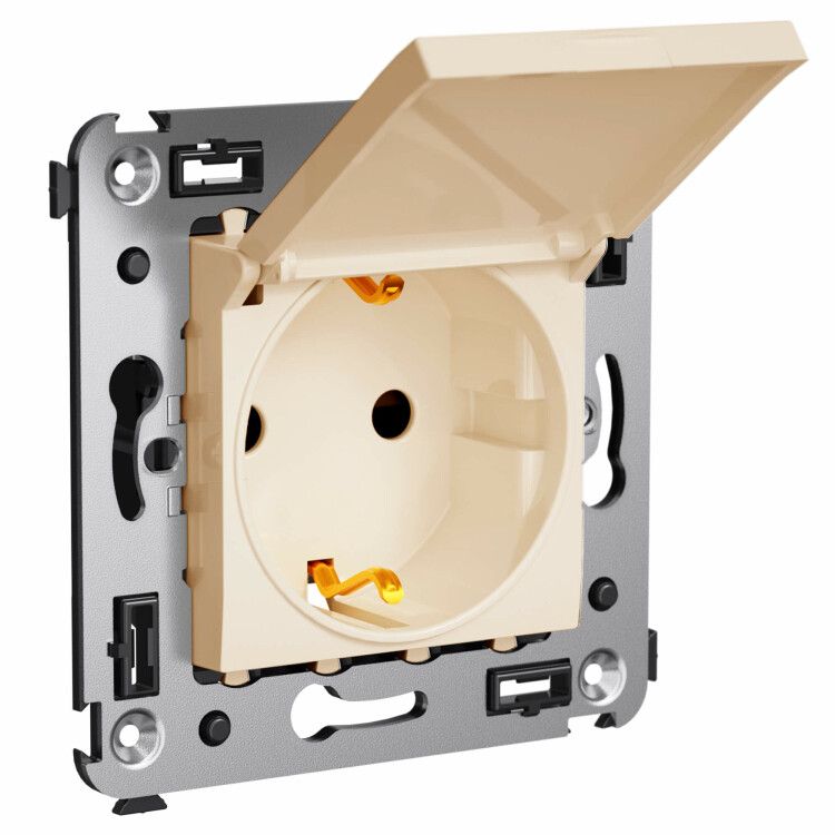 Розетка 1-м СП 2мод. Avanti "Ванильная дымка" 16А IP41 2P+E защ. шторки с крышкой беж. DKC 4405013 ДКС