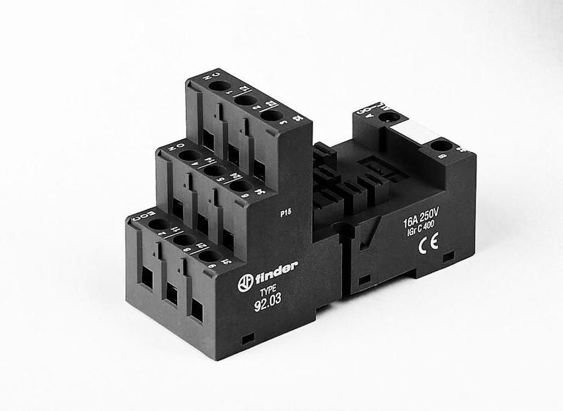 Розетка с винтовыми клеммами (с зажимной клетью) для реле 62.31, 62.32, 62.33, применяются модули 86.00, 86.30, 99.02, в комплекте металлическая клипса 092.71, версия: черный цвет (заказ минимум/кратно 1000шт) - 92.03.0SMA FINDER 92030SMA