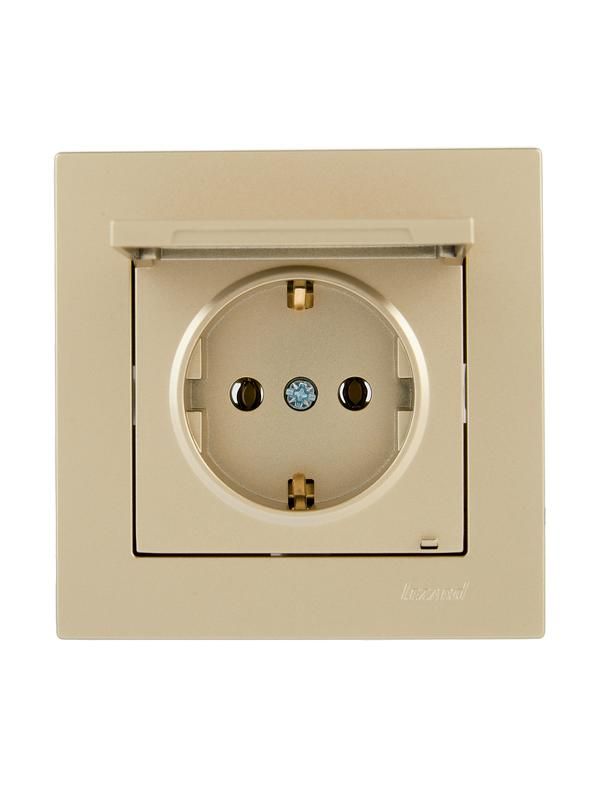 Розетка с заземл. VESNA крышкой ПБТ зол. LEZARD 742-3688-123B