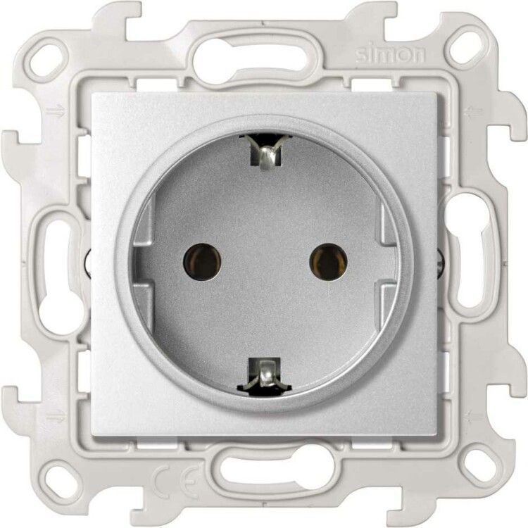 Розетка с заземлением Schuko 2P+E 16A 250В с системой Push&Go цвета алюминий от бренда Simon, артикул 2420434-033, предназначена для безопасного подключения бытовых и профессиональных устройств с заземлением. Механизм серии 24 HARMONIE сочетает минималистичный дизайн с технологией быстрой сборки Push&Go, что делает её удобным решением для современных интерьеров и сложных монтажных задач.